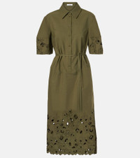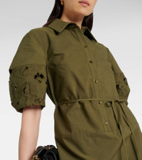 Product Details - Material: 70% cotton, 30% polyester - Care instructions: dry clean - Made in Poland - Designer color name: Olive - Closure: partially buttoned front - Pockets: side slit pockets - Attached belt - Sleeves: short-sleeved - Item number: P00960696 Size & Fit - True to size - Dropped shoulders - Loose fit, comes with belt - Non-stretchy fabric - The model seen in the picture is 178cm-5'10" and wearing a size UK 8