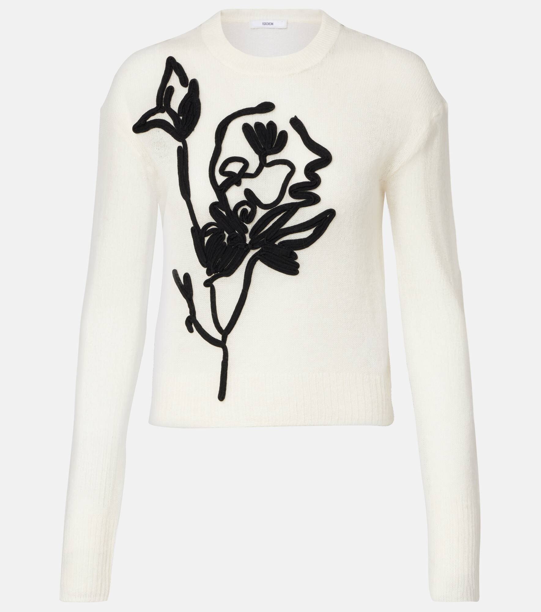 This Erdem sweater brings a sophisticated attitude with its simple yet unique design. Crafted from an alpaca and wool blend, this garment features an abstract embroidery on the front and a semi-sheer effect. Product Details - Material: 41% nylon, 38% alpaca wool, 21% wool - Care instructions: dry clean - Made in China - Designer color name: Ivory - Item color: beige - Cuff: ribbed - Hem: ribbed - Item number: P01058090 Size & Fit - True to size - Dropped shoulders - Semi-sheer - Straight fit - Stretchy fabric - Slightly cropped - The model seen in the picture is 178cm-5'10" and wearing a size XS