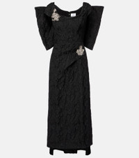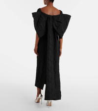 Incorporate an air of modern romance into your edit with Erdem's whimsical and delicate designs. This midi length gown is made from embroidered cloque jacquard and dons an oversized bow detail on the back. Product Details - Material: 83% polyester, 17% nylon - Care instructions: dry clean - Made in the UK - Designer color name: Black - Item color: black - Material II: 77% polyamide, 23% elastane - Material III: 100% nylon - Lining: 100% silk - Embroidery: 40% brass, 20% glass, 20% metallic fibres, 20% polyamide - Closure: zipped back - Item number: P01058080 Size & Fit - True to size - Internal boned corset for support - Cinched waist - Non-stretchy fabric - The model seen in the picture is 178cm-5'10" and wearing a size UK 8