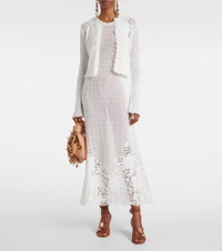 Endlessly charming, this cardigan from Erdem is an elegant addition to your everyday wardrobe. Knitted from cotton, the style is complete with scalloped edges and floral embroidery. Product Details - Material: 100% cotton - Care instructions: machine wash at 30 degrees - Made in Romania - Designer color name: Ivory - Item color: white - Trim: 60% polyester, 40% cotton - Item number: P01034792 Size & Fit - True to size - Semi-sheer - Straight fit - Stretchy fabric - Cropped - The model seen in the picture is 178cm-5'10" and wearing a size XS