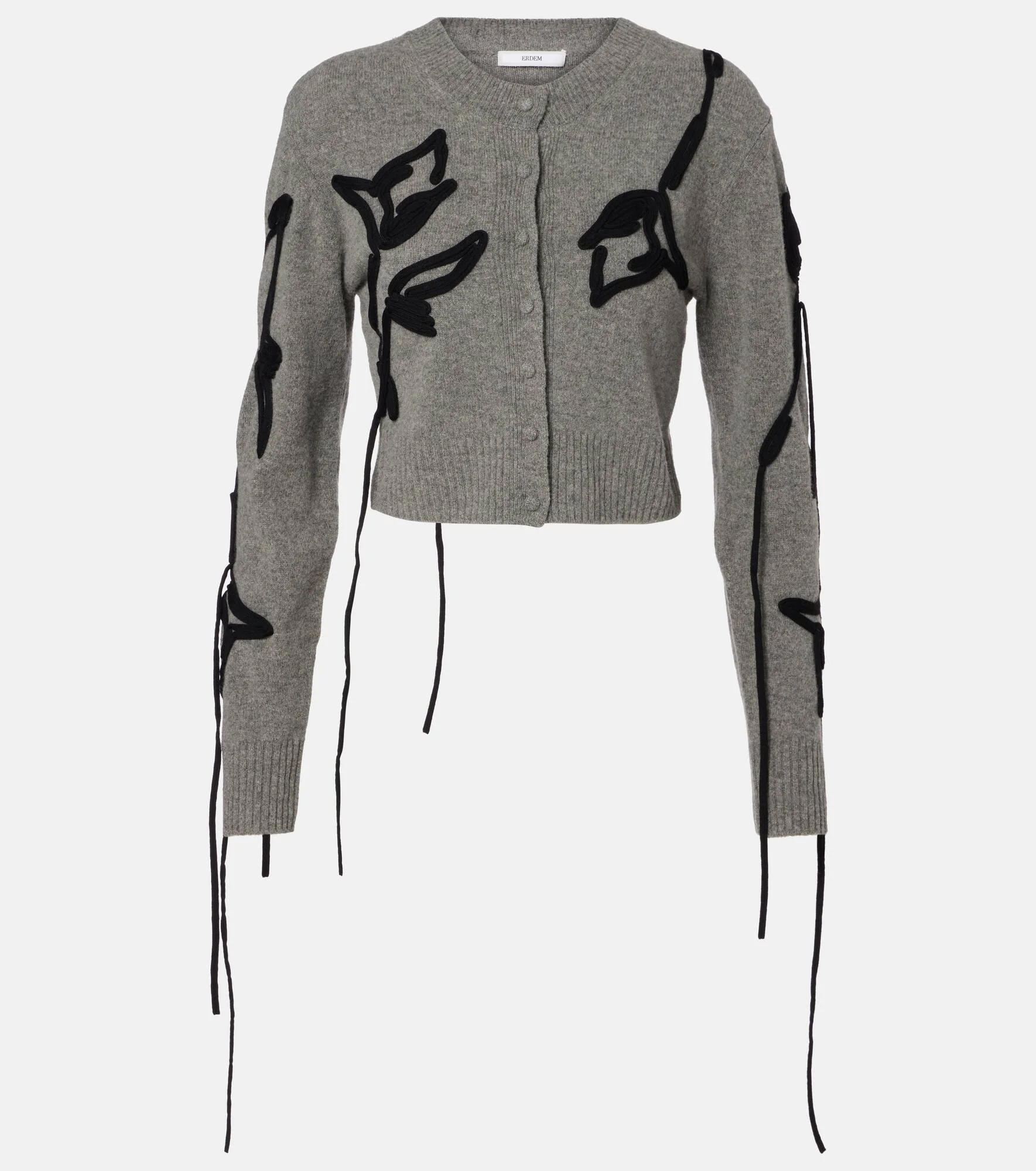 Incorporate an air of modern romance to your edit with this Erdem cardigan, crafted from wool for a soft feel. The cropped design features a floral embroidery, classic crewneck, buttoned front, and ribbed trims for a refined finish. Product Details - Material: 100% wool (merino wool) - Care instructions: hand wash - Made in China - Designer color name: Grey Melange - Item color: gray - Collar: crewneck - Closure: buttoned front - Cuff: ribbed - Hem: ribbed - Item number: P01081510 Size & Fit - True to size - Cinched waist - Stretchy fabric - Cropped - The model seen in the picture is 178cm-5'10" and wearing a size XS