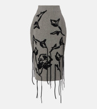 Embroidered wool pencil skirt