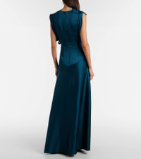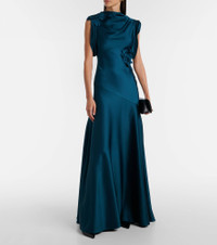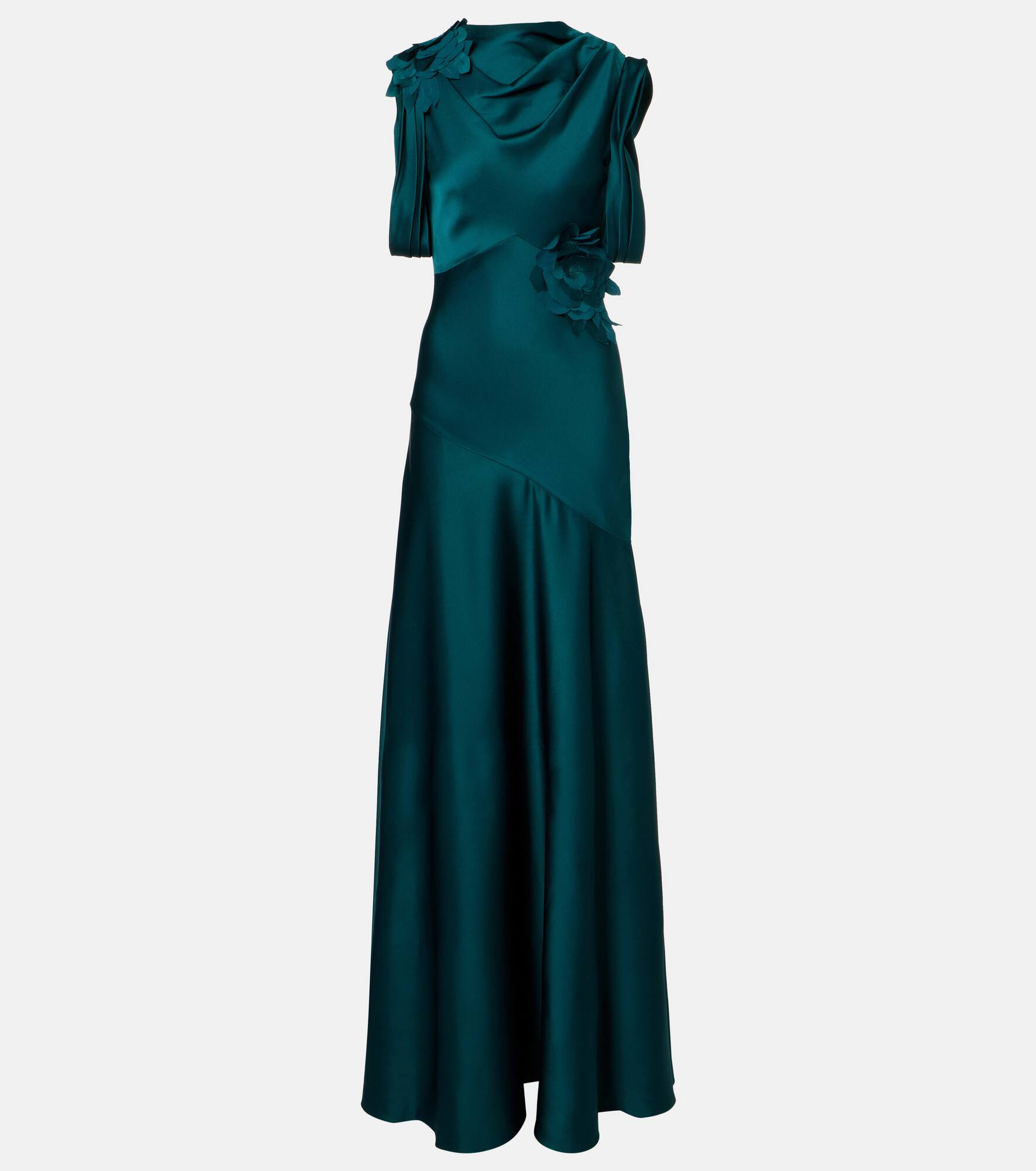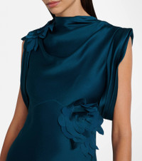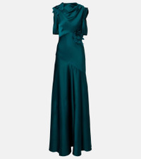 Floral-appliqué satin gown