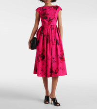 Floral cotton faille midi dress