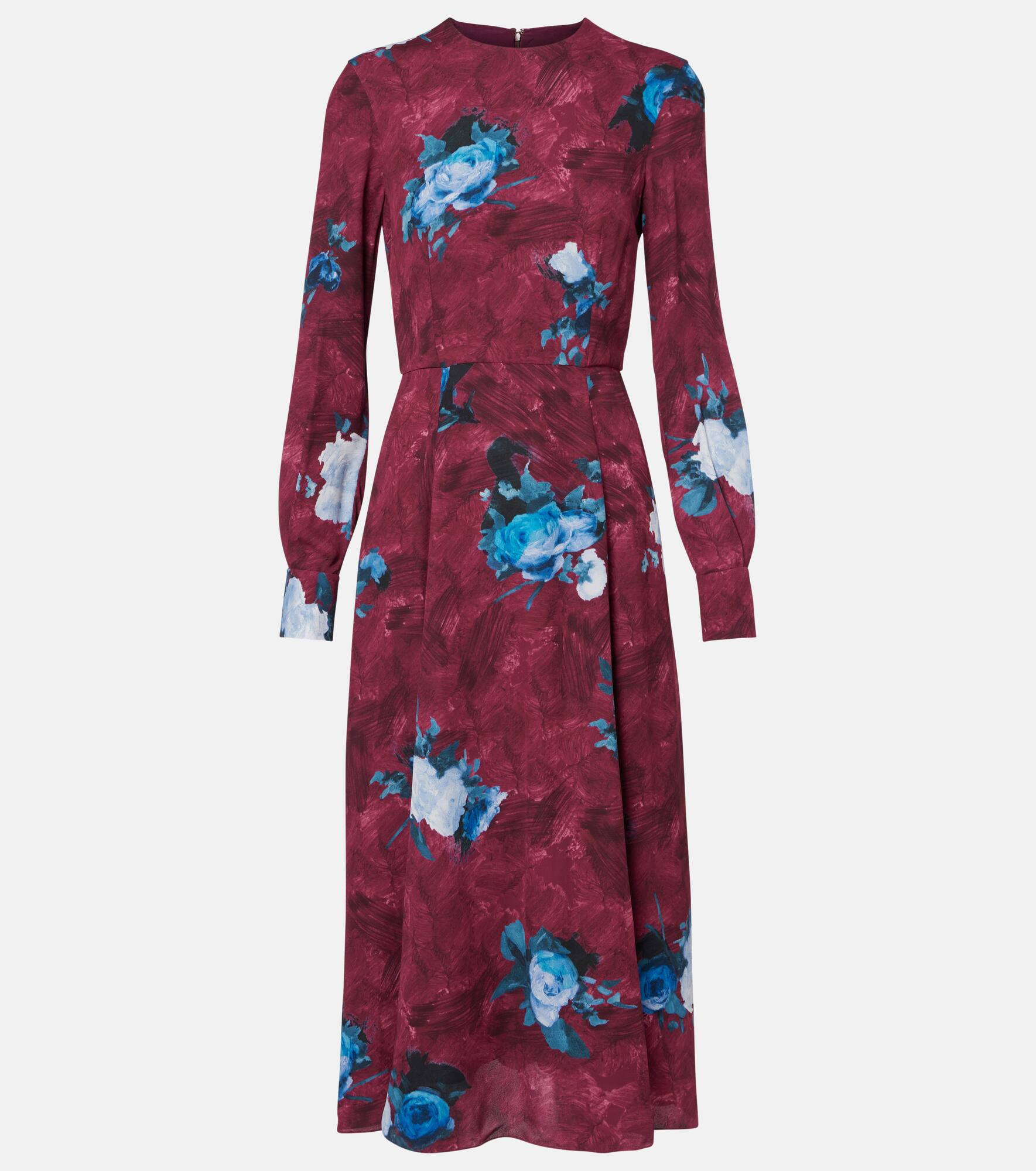 This Erdem midi dress showcases the label’s hallmark floral prints, designed in a refined silhouette that transitions seamlessly from day to evening. Crafted from lightweight crepe, the design is finished with a zip closure at the back. Product Details - Material: 100% viscose - Care instructions: dry clean - Made in Bulgaria - Designer color name: Abstract Rose Mulberry Red - Item color: burgundy, blue - Lining: 100% silk - Closure: zipped back - Cuff: one button - Fully lined - Item number: P01081516 Size & Fit - Fits large to size - we recommend trying one size smaller - Cinched waist - Non-stretchy fabric - The model seen in the picture is 178cm-5'10" and wearing a size UK 6