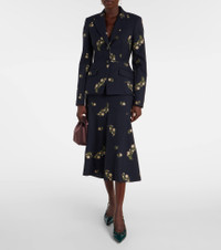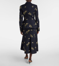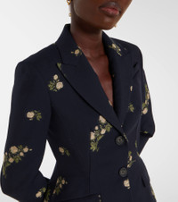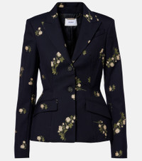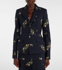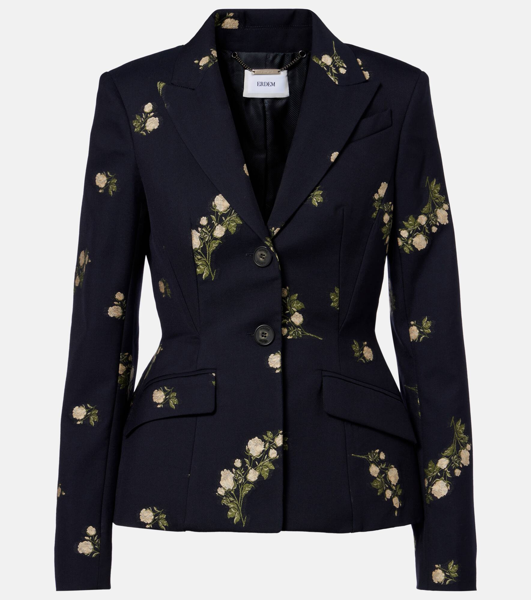 Incorporate an air of modern romance into your edit with Erdem's whimsical and delicate designs. Made from wool and cotton floral jacquard, this single-breasted blazer is tailored in a peplum silhouette and finished with shoulder pads and multiple pockets. Product Details - Material: 88% wool, 12% cotton - Care instructions: dry clean - Made in the UK - Designer color name: Midnight Blue - Item color: blue - Material II: 50% wool, 50% viscose - Lining: 100% cupro - Closure: single-breasted (two buttons) - Pockets: angled chest pocket, flap pockets - Shoulder pads - Cuff: four buttons - Vent: no vent - Item number: P01058095 Size & Fit - True to size - Shoulder pad inserts - Cinched waist - Non-stretchy fabric - Falls to the hip - The model seen in the picture is 178cm-5'10" and wearing a size UK 8