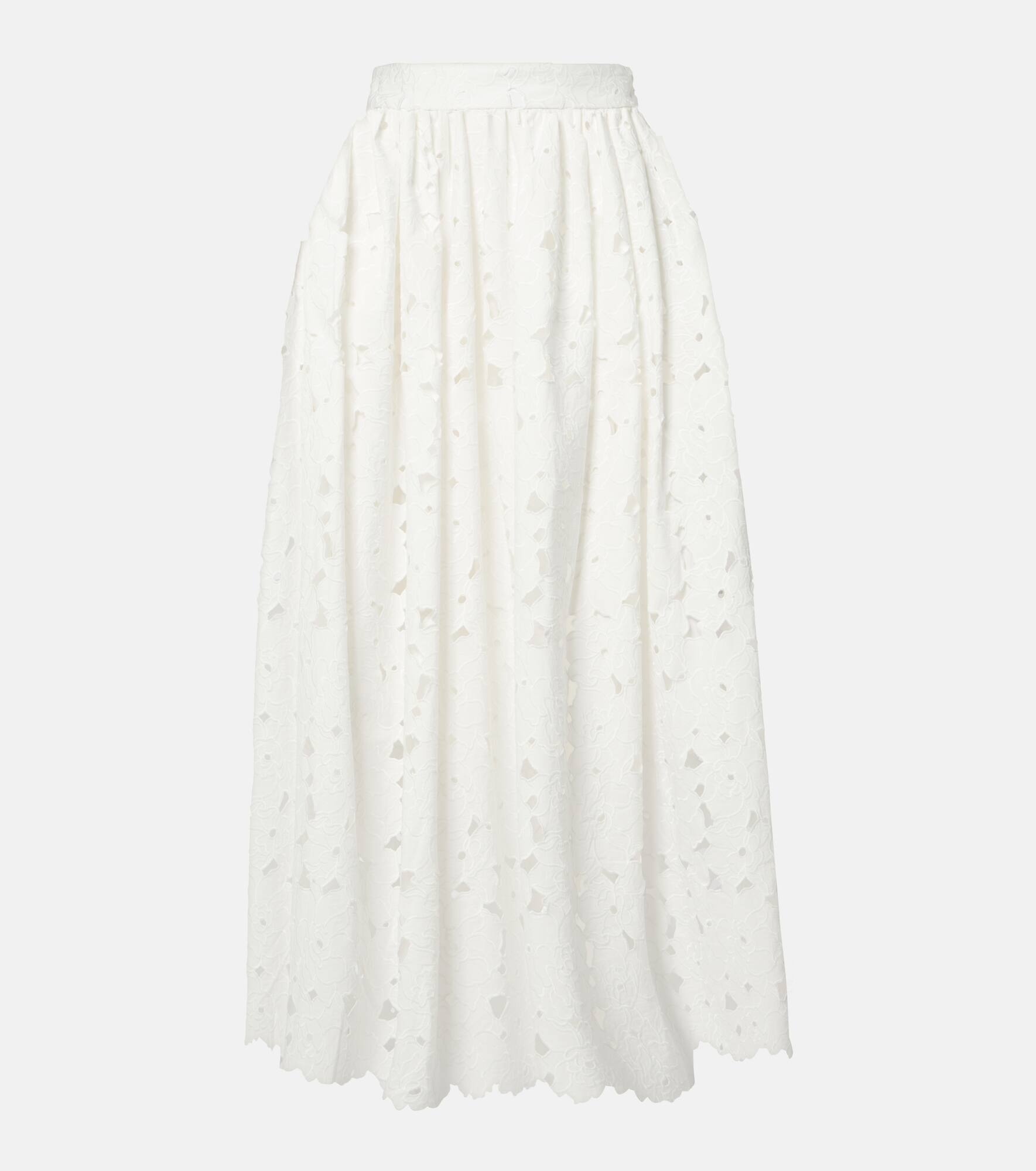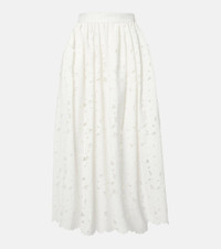 Gathered cotton-blend midi skirt