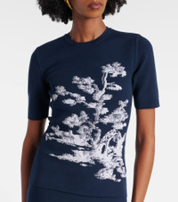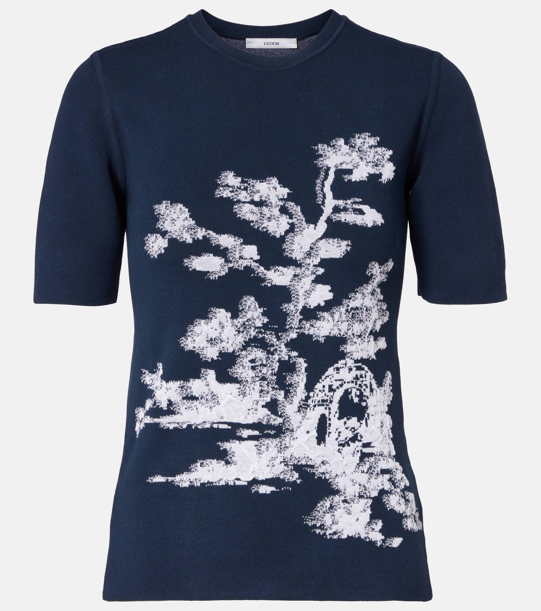 Incorporate an air of modern romance into your edit with Erdem's whimsical and delicate designs. This top features a nature-inspired jacquard pattern and adds a soft touch to any outfit. Product Details - Material: 57% viscose, 25% polyester, 18% cotton - Care instructions: machine wash at 40 degrees - Made in Italy - Designer color name: Cyanotype Etching Navy - Item color: blue, white - Collar: crewneck - Item number: P01058088 Size & Fit - True to size - Fitted - Stretchy fabric - Falls to the hip - The model seen in the picture is 178cm-5'10" and wearing a size XS
