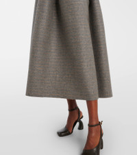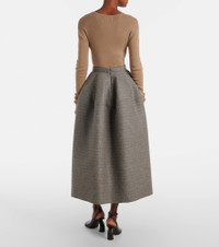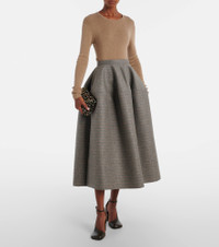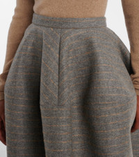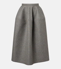 Incorporate modern romance into your edit with Erdem's whimsical and delicate designs. Crafted from soft wool and mohair flannel, this midi skirt is tailored to a high-rise, voluminous silhouette and features thin horizontal stripes. Product Details - Material: 93% wool, 6% mohair, 1% polyamide - Care instructions: dry clean - Made in Romania - Designer color name: Grey Melange - Item color: gray - Material II: 60% polyurethane, 40% polyester - Lining: 100% silk - Closure: concealed zipped back - Pockets: side slit pockets - Item number: P01081523 Size & Fit - True to size - Non-stretchy fabric - The model seen in the picture is 178cm-5'10" and wearing a size UK 8