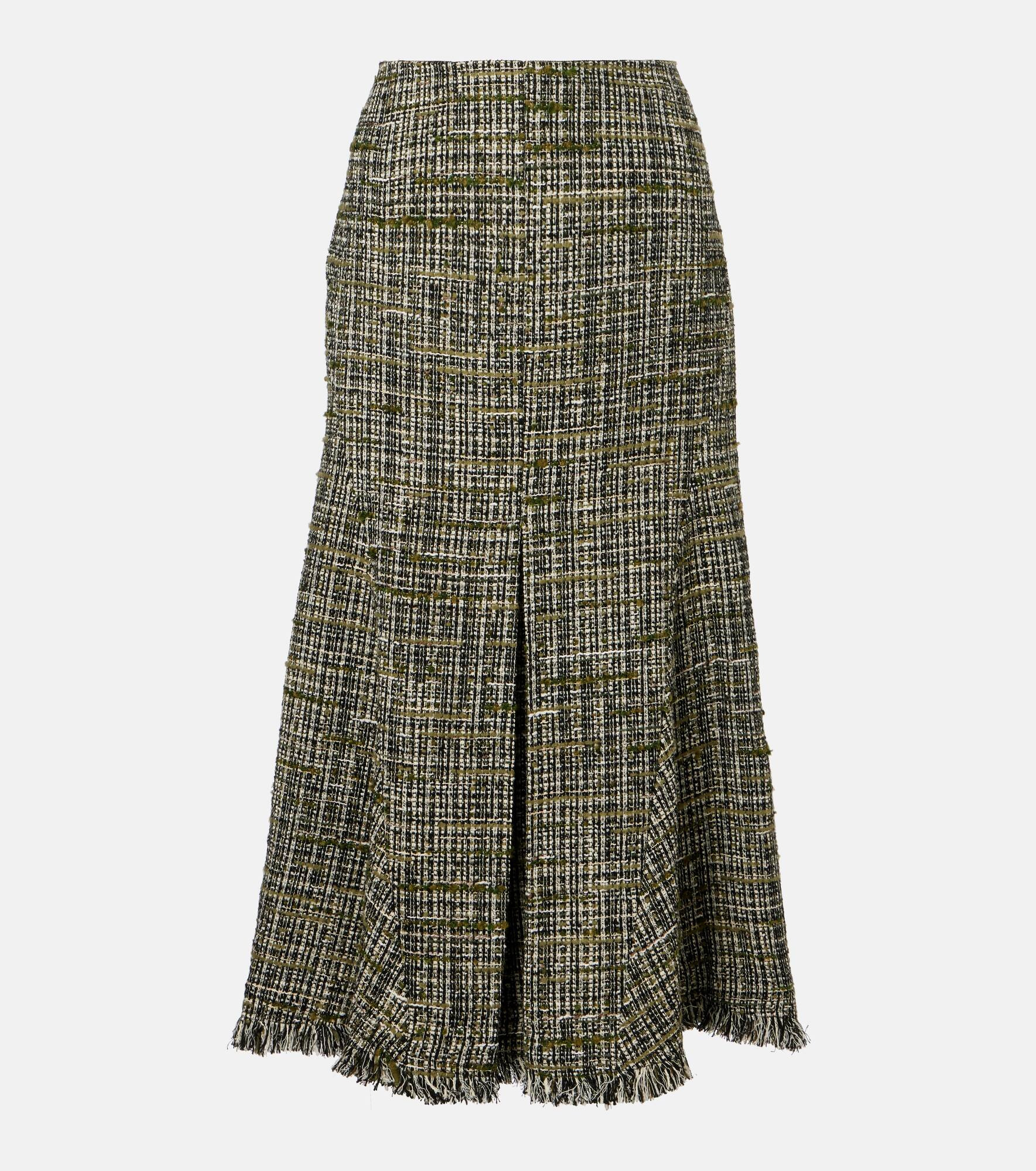 Incorporate an air of modern romance into your edit with Erdem's whimsical and delicate designs. This midi skirt is crafted from panels of tweed. Pair yours with the matching jacket. Product Details - Material: 30% polyacrylic, 20% cotton, 17% cotton (recycled), 11% polyester, 11% wool, 7% polyamide, 3% polyester (recycled), 1% other fibres - Care instructions: dry clean - Made in Romania - Designer color name: Dark Olive - Item color: multicolor - Lining: 100% silk - Closure: concealed zipper - Item number: P01058078 Size & Fit - True to size - Non-stretchy fabric - The model seen in the picture is 178cm-5'10" and wearing a size UK 8