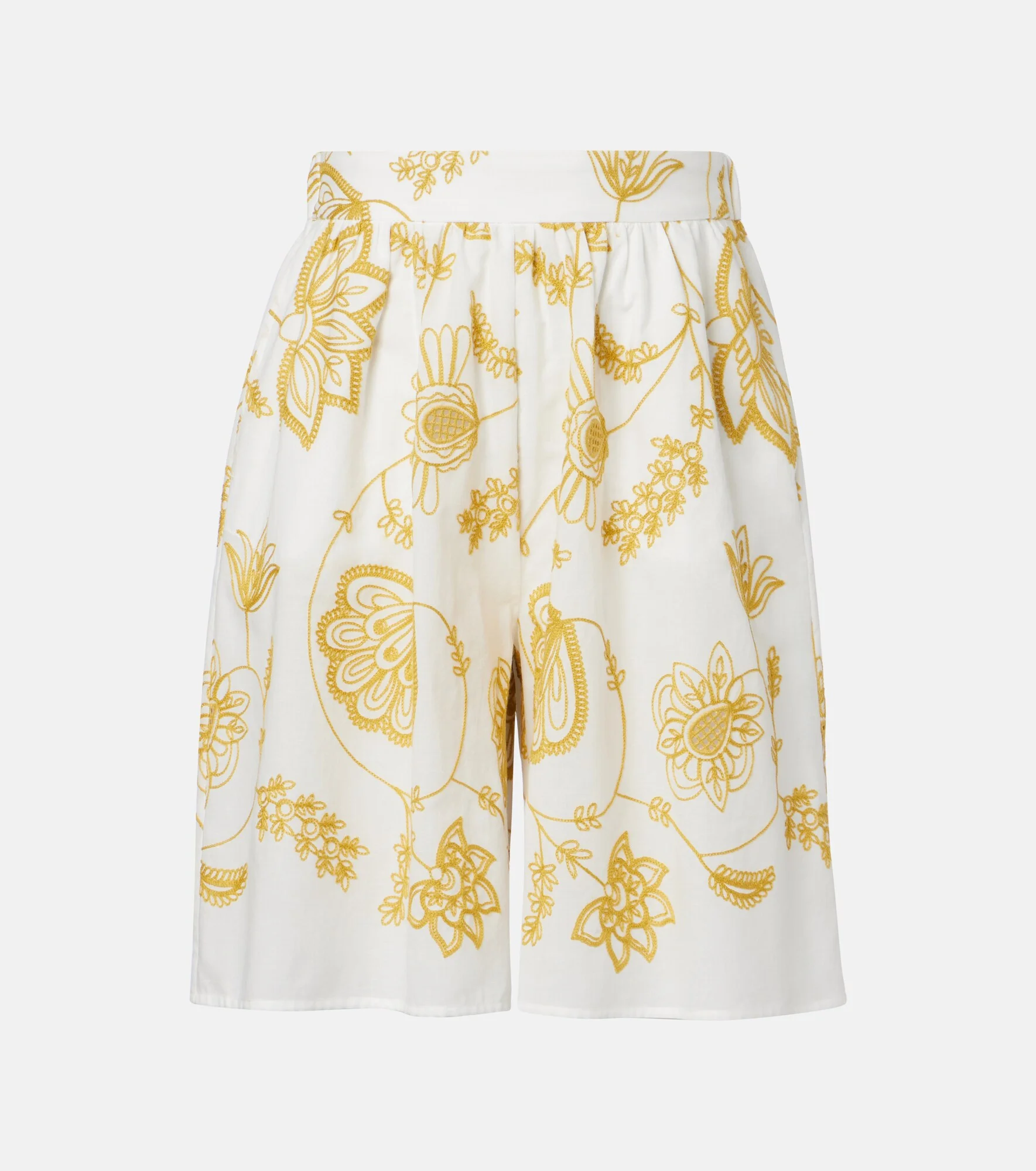Having revolutionized swimwear in the 1970s, Eres has a legacy of elegant and streamlined silhouettes that flatter every figure. The Chandra Bermuda shorts are made from a light cotton blend, and the relaxed silhouette is finished with embroidered florals. Product Details - Material: 97% cotton, 3% polyester - Care instructions: machine wash at 30 degrees - Made in Bulgaria - Color: yellow - Designer color name: Blanc/Or - Elasticated waistband - Pockets: side slit pockets - Item number: P01161895 Size & Fit - True to size - Semi-sheer - Elasticated waist - Non-stretchy fabric - Wide-leg - The model seen in the picture is 178cm-5'10" and wearing a size S
