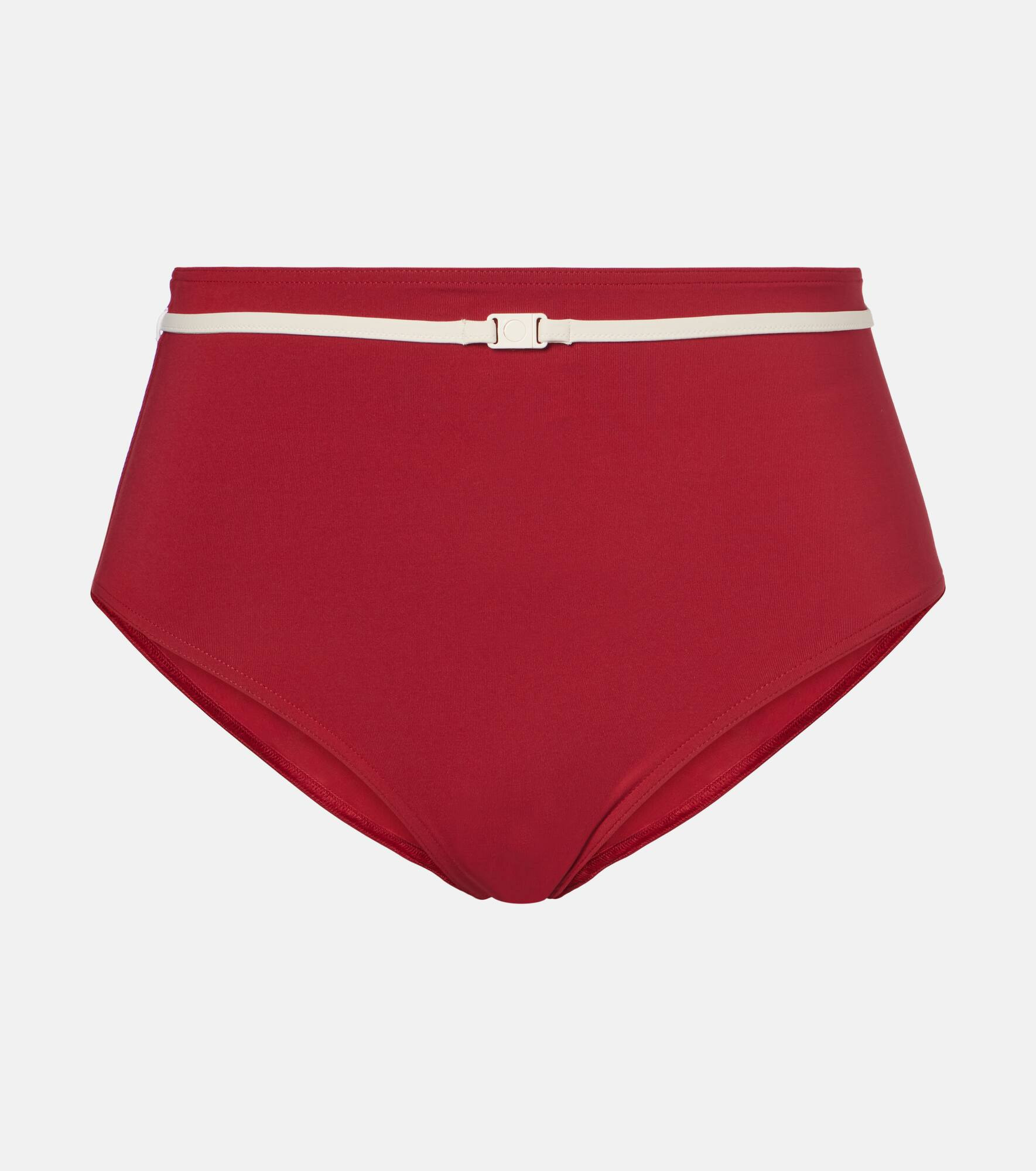 The Cheryl bikini bottoms from Eres feature a high-rise silhouette and a removable belt for versatile styling. This piece is crafted from the brand’s signature Peau Douce, a second-skin fabric that offers comfort and a flawless fit. Product Details - Material: 77% polyamide, 23% elastane - Care instructions: machine wash at 30 degrees - Made in France - Designer color name: Reinette/Percale - Item color: red, white - Detachable belt - Item number: P01096138 Size & Fit - True to size - High-waisted - Medium-cut leg - The model seen in the picture is 178cm-5'10" and wearing a size FR 38