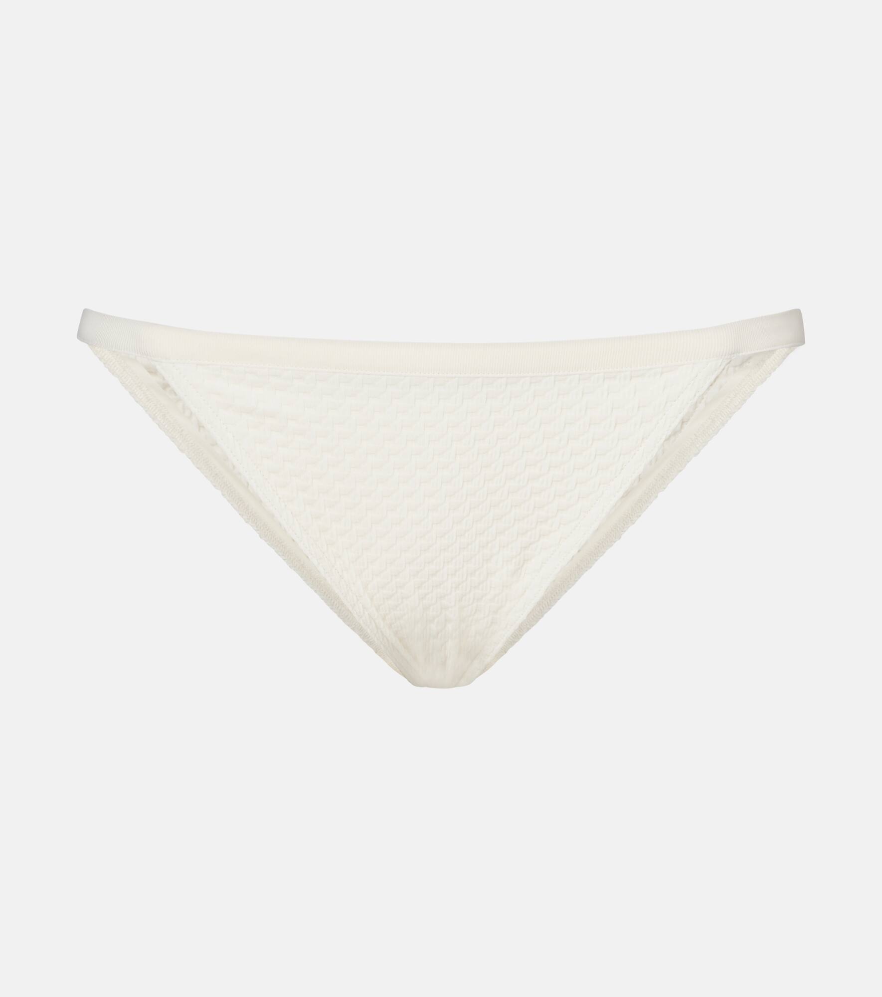 Having revolutionized swimwear in the 1970s, Eres has a legacy of elegant and streamlined silhouettes that flatter every figure. The Look bikini bottoms are cut from textured jacquard and feature slim straps at the sides. Product Details - Material: 91% polyamide, 9% elastane - Care instructions: machine wash at 30 degrees - Made in France - Designer color name: Sable Fin - Item color: white - Item number: P01042117 Size & Fit - True to size - Medium-cut leg - The model seen in the picture is 178cm-5'10" and wearing a size FR 36