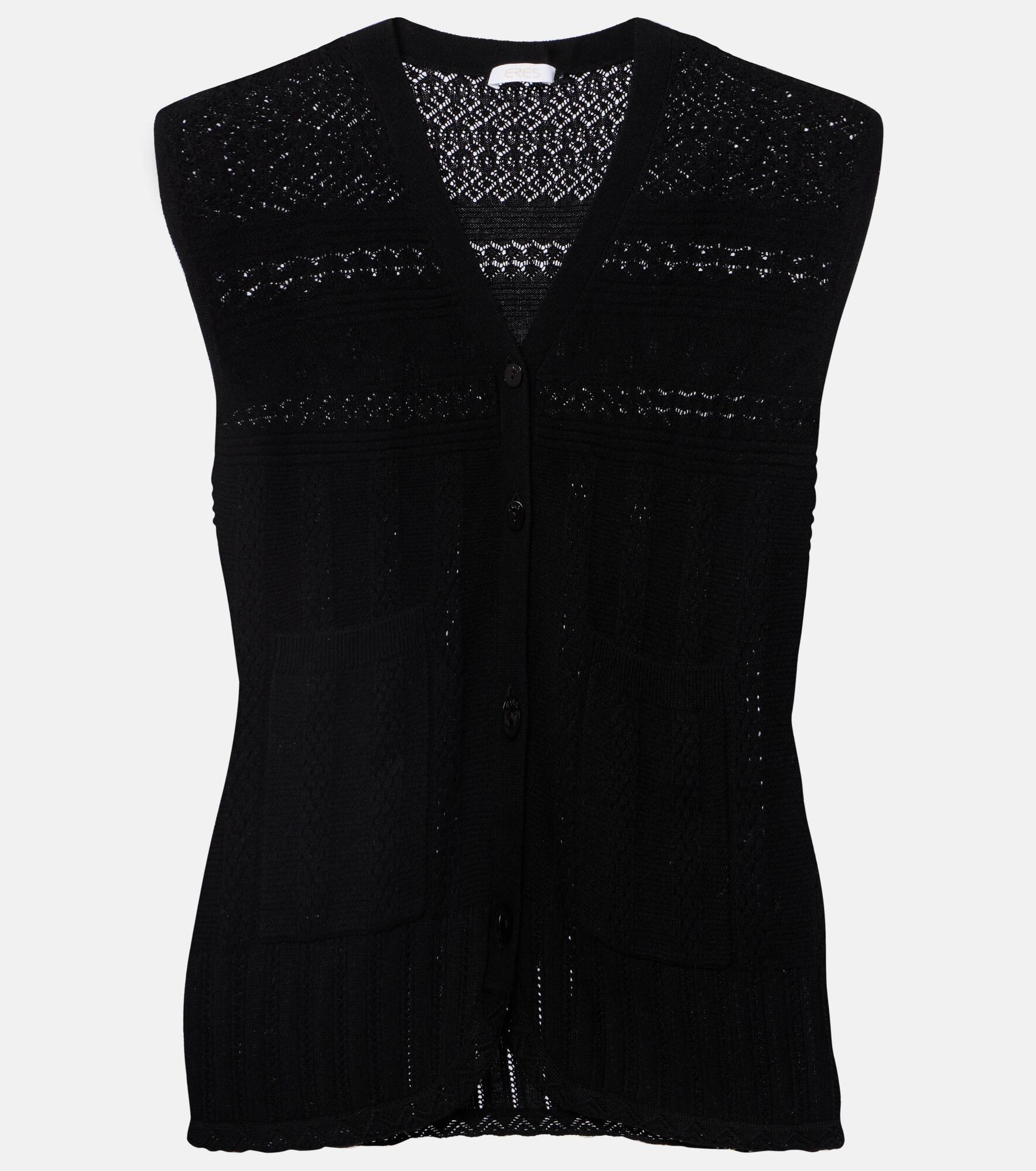 Eres has a legacy of elegant and streamlined silhouettes that flatter every figure. The Mixte sweater vest is crafted from wool and cashmere, and the buttoned silhouette is finished with a V-neckline and a pointelle pattern. Product Details - Material: 70% wool, 30% cashmere - Care instructions: hand wash - Made in China - Designer color name: Noir - Item color: black - Contains non-textile parts of animal origin - Closure: buttoned front - Pockets: patch pockets - Item number: P01105405 Size & Fit - True to size - Straight fit - Slightly stretchy fabric - Falls to the hip - The model seen in the picture is 178cm-5'10" and wearing a size XS