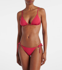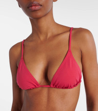 The Mouna bikini top from Eres has the classic triangle cup silhouette and slim straps that can be tied straight or as a halterneck. The piece offers minimal coverage. Product Details - Material: 84% polyamide, 16% elastane - Care instructions: machine wash at 30 degrees - Made in France - Designer color name: Pink - Item color: pink - Closure: self-ties - Item number: P01042103 Size & Fit - Fits small to size - we recommend trying one size larger - Cup size: A/B - The model seen in the picture is 178cm-5'10", cup size B, and wearing a size FR 38