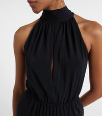 Eres is a label adored by tastemakers and fashion insiders. The Suit jumpsuit is made in France from jersey and features a self-tie halterneck and a cutout at the chest. Product Details - Material: 94% polyamide, 6% elastane - Care instructions: machine wash at 30 degrees - Made in France - Designer color name: Noir - Item color: black - Lining: 68% polyamide, 32% elastane - Self-tie neck - Elasticated waistband - Item number: P01105391 Size & Fit - True to size - Petite sizing - Low back - Cinched waist - Elasticated waist - Stretchy fabric - Straight leg - The model seen in the picture is 178cm-5'10" and wearing a size S