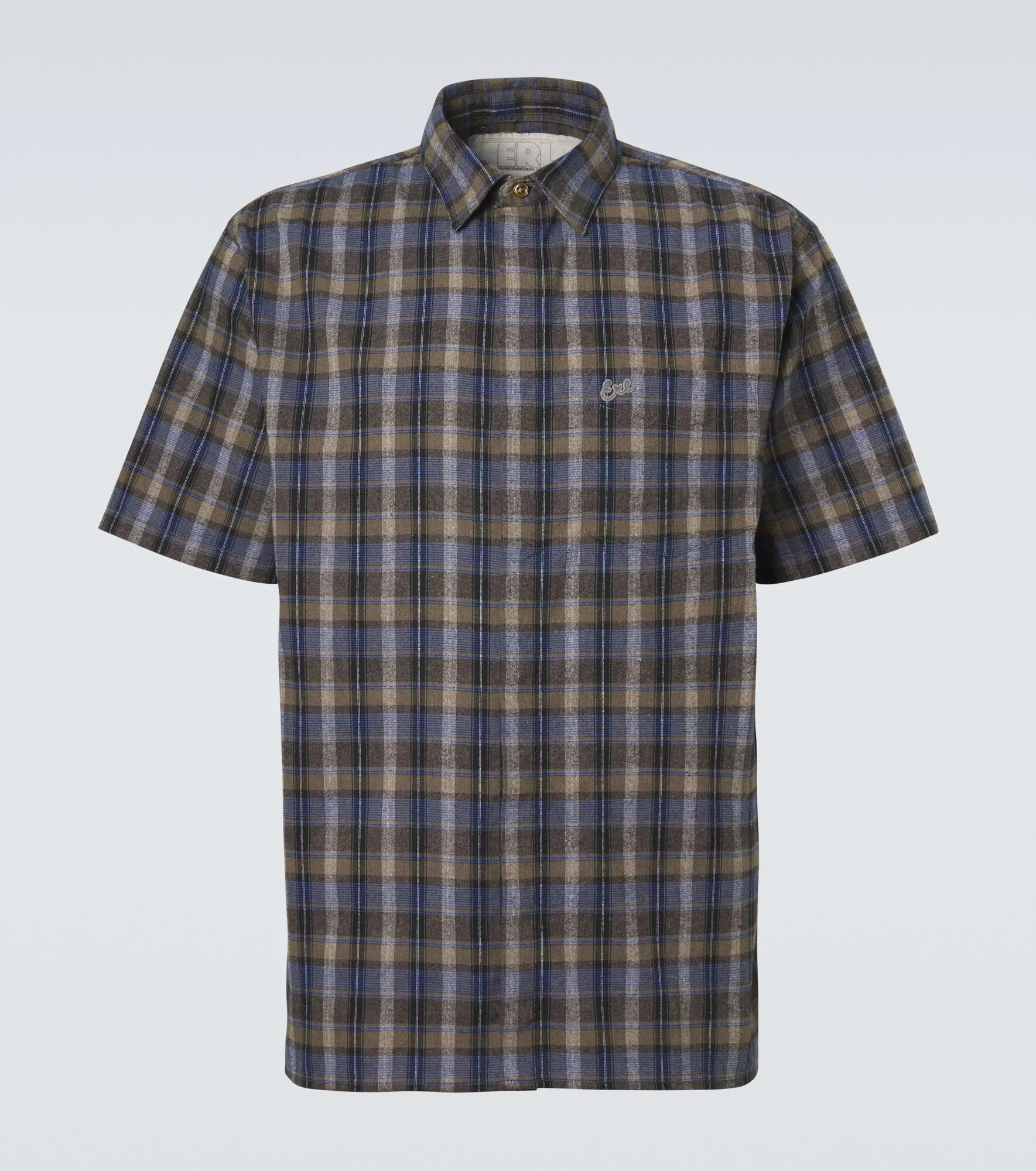 Established in 2018, ERL's influences are born of Venice Beach surf culture and an air of California cool. This shirt is made from a cotton-blend to a checked short-sleeved design. Product Details - Material: 50% cotton, 50% polyester - Care instructions: machine wash at 30 degrees - Made in Romania - Color: grey - Designer color name: Grey Check - Closure: concealed buttoned front - Collar: classic (Straight point) - Pockets: breast pocket - Item number: P01156409 Size & Fit - True to size - With pleats in the back - Designed for a loose fit - Non-stretchy fabric - Falls below the hip - The model in the picture is 185cm-6'1" and wearing a size L