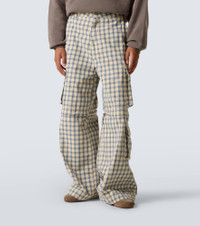 Inspired by California's laid-back lifestyle, ERL's casual designs come in a variety of mood-boosting colors and nostalgic patterns. These cotton cargo pants feature an all-over check pattern and can unzip at the knees on warmer days. Product Details - Material: 100% cotton - Care instructions: machine wash at 30 degrees - Made in Portugal - Designer color name: Beige Blue - Item color: blue, beige - Closure: zipper fly, button fastening - Drawstring waist - Belt loops - Pockets: side slit pockets, back pockets, cargo pockets - Item number: P01085204 Size & Fit - True to size - Adjustable at the waist - Non-stretchy fabric - Wide-leg - The model in the picture is 185cm-6'1" and wearing a size L