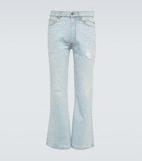 Distressed mid-rise flared jeans