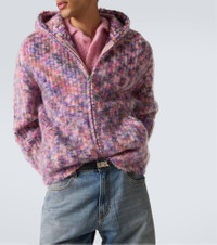 This hooded cardigan from ERL will keep you warm and cozy without giving up on style. Made from a wool, mohair, and cotton blend, the piece is finished with a zipped front and a space-dyed effect. Product Details - Material: 40% wool, 36% mohair, 13% polyamide, 11% cotton - Care instructions: hand wash - Made in Italy - Designer color name: Pink - Item color: pink - Closure: zipped front - Pockets: patch pockets - Hood - Hem: ribbed - Cuff: ribbed - Item number: P01085175 Size & Fit - True to size - Designed for a loose fit - Stretchy fabric - Falls to the hip - Height of model is 188cm-74" and wears a size L