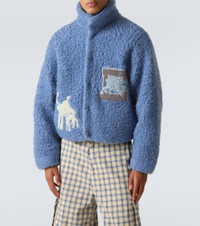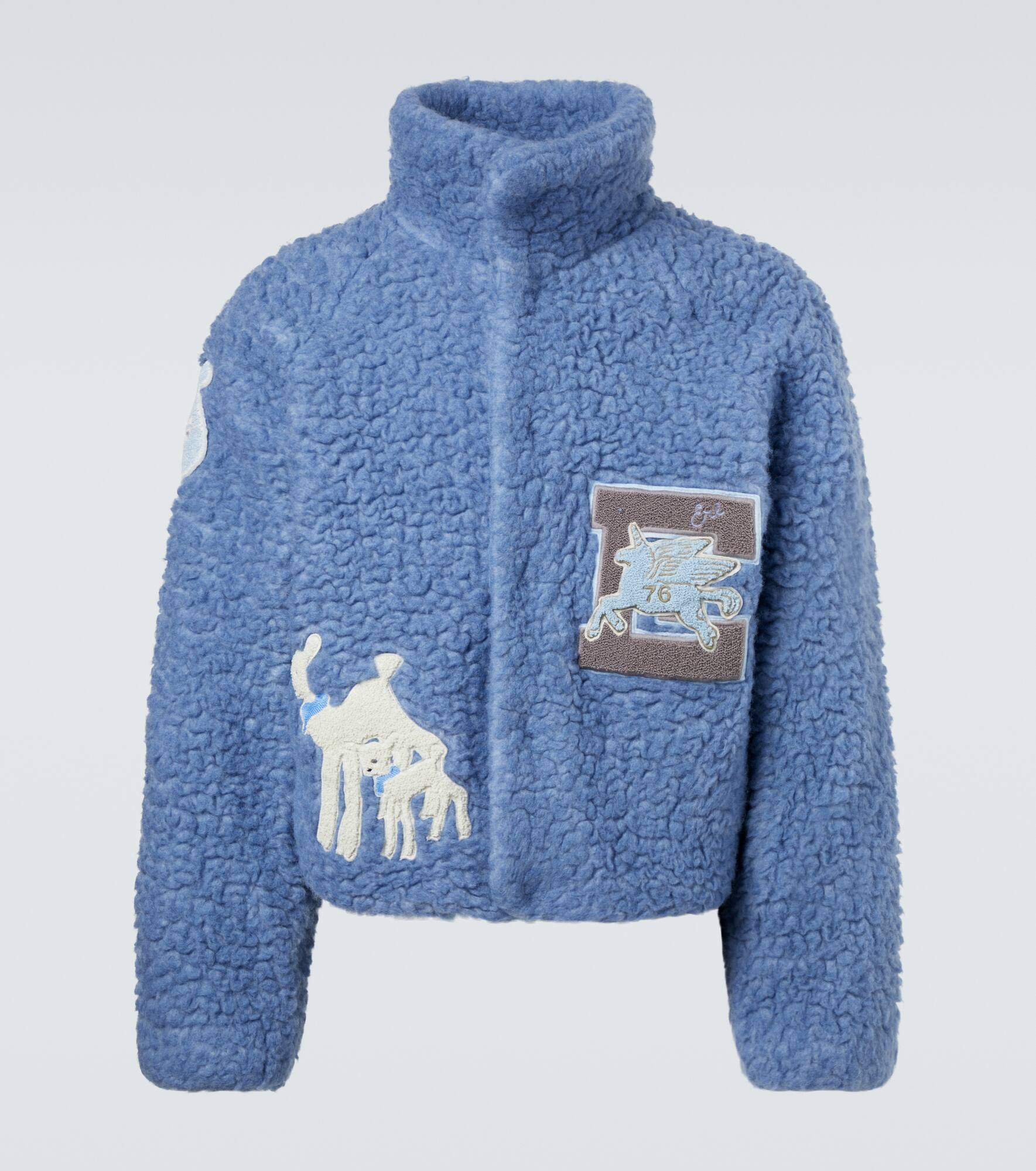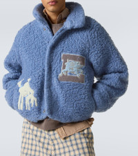Patch-appliqué wool-blend fleece jacket