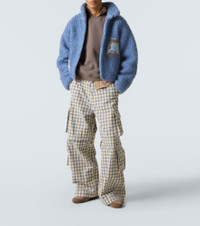 Crafted from a soft wool-blend fleece, this ERL jacket is the perfect staple for cold-weather days. The design features front patches, a high collar, side pockets, and a snap-button closure. Product Details - Material: 60% wool, 40% polyester - Care instructions: hand wash - Made in Italy - Designer color name: Blue - Item color: blue - Lining: 100% cotton - Closure: snap-buttoned front - Pockets: side slit pockets - Item number: P01085173 Size & Fit - True to size - Designed for a loose fit - Elasticated hem - Stretchy fabric - Slightly cropped - The model in the picture is 185cm-6'1" and wearing a size L