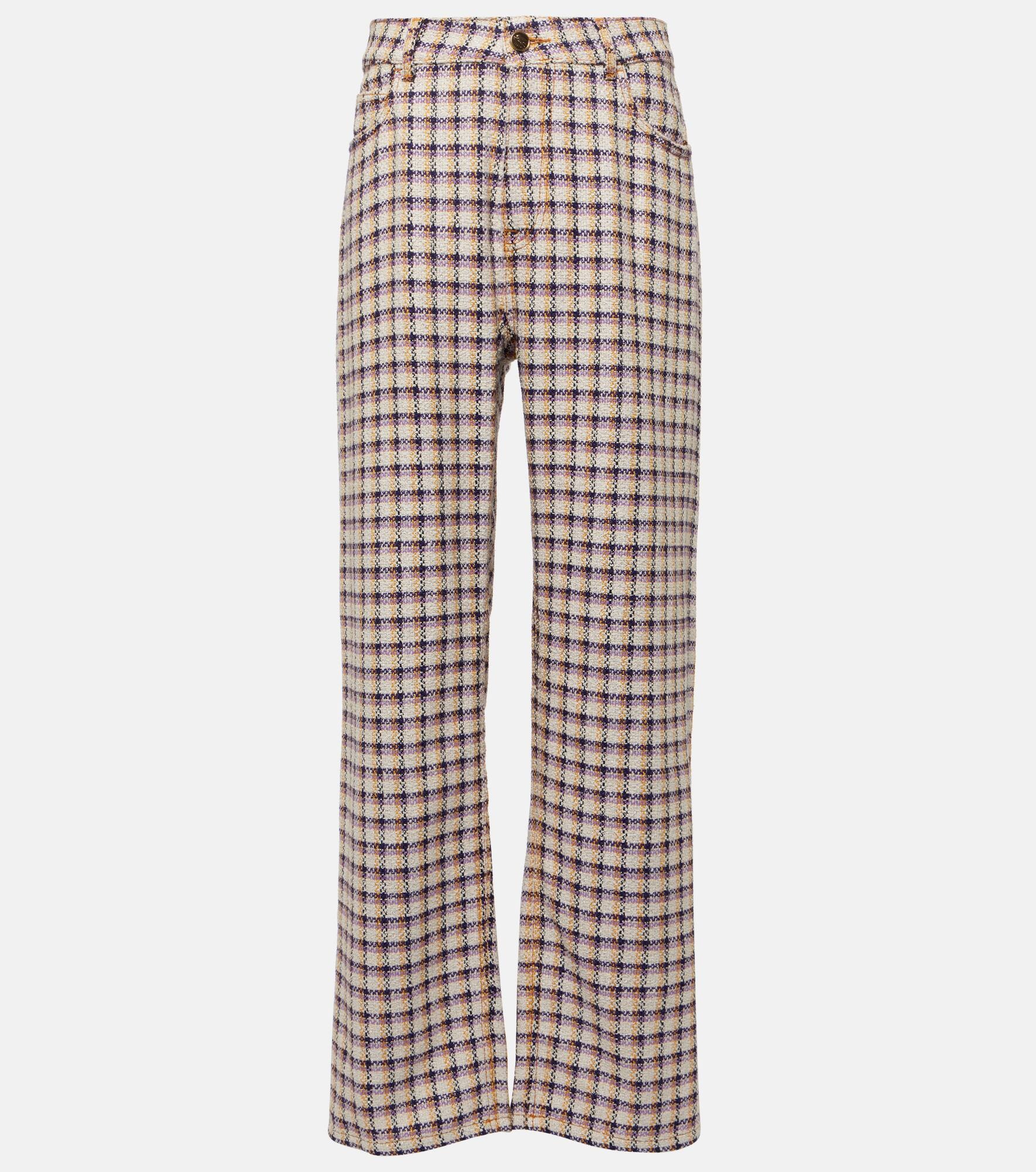 Checked cotton-blend tweed wide-leg pants