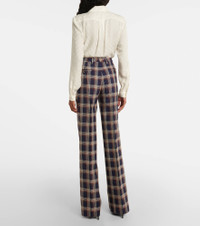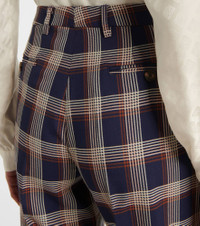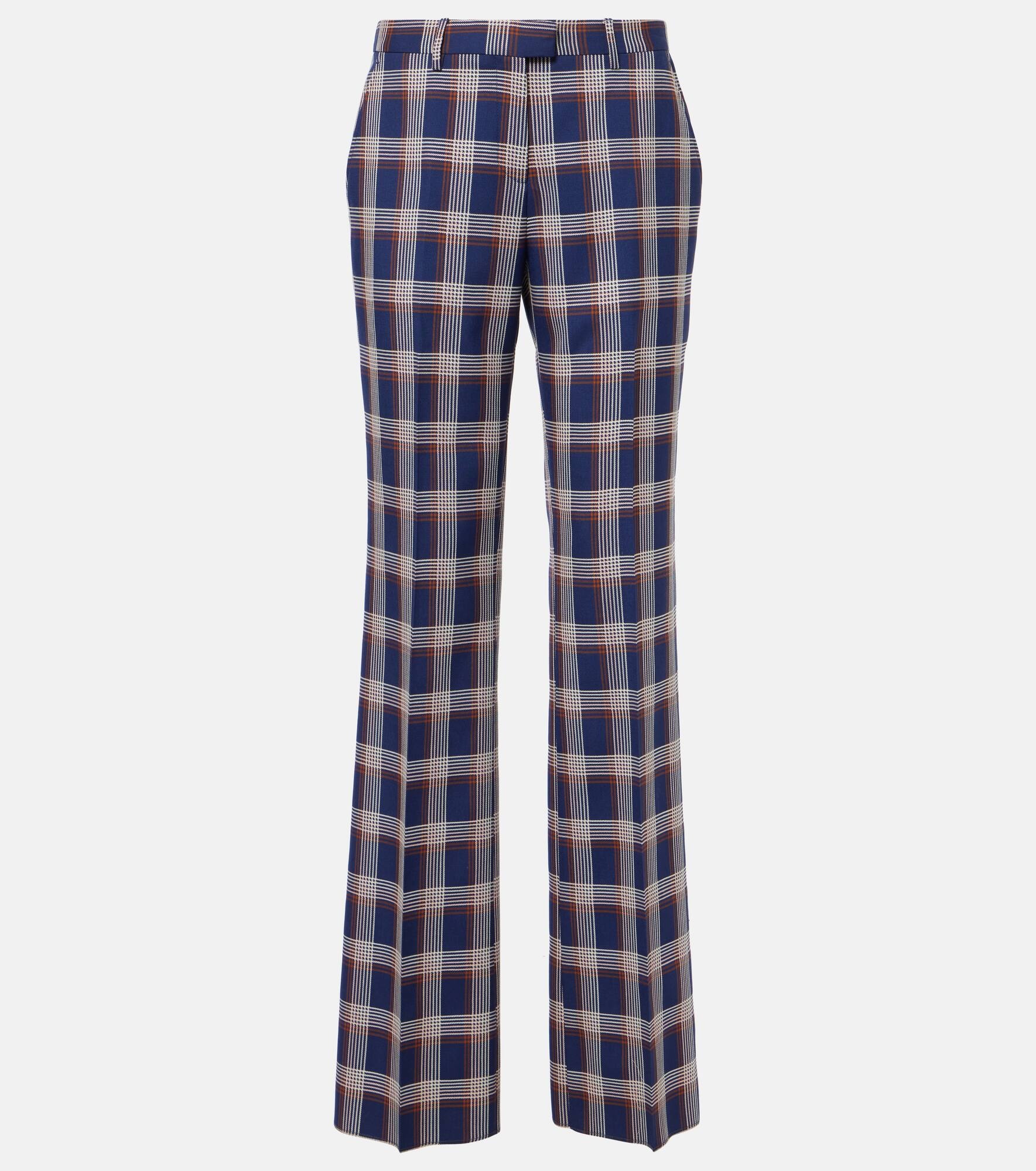 Striking the perfect balance between timeless sophistication and modern elegance, these pants from Etro are a wardrobe essential for everyday refinement. Made from checked wool, this high-rise style is tailored to a wide-leg silhouette. Product Details - Material: 100% wool - Care instructions: dry clean - Made in Italy - Designer color name: Navy - Belt loops - Closure: zip, hook, and button fastening - Pockets: side slit pockets, back pockets - Item number: P01014601 Size & Fit - True to size - Non-stretchy fabric - Wide-leg - The model seen in the picture is 178cm-5'10" and wearing a size IT 40