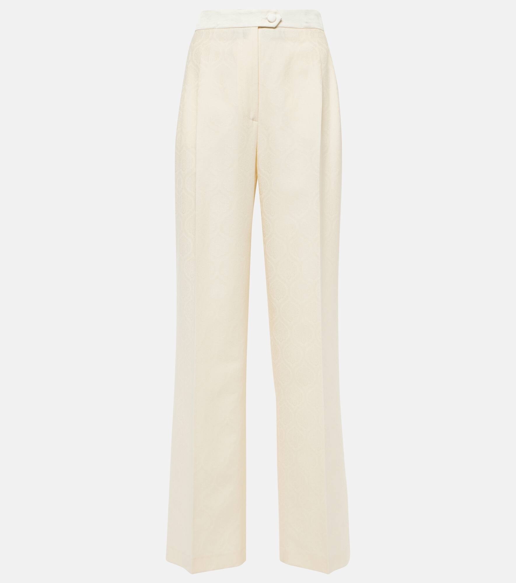 Pleated cotton and wool-blend jacquard wide-leg pants