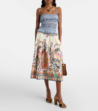 Etro's brand DNA manifests Italian glamour through revelry in color, fabric, and an approach to elegance that's entirely its own. This midi skirt is made from cotton voile jacquard to a high-rise cut. Product Details - Material: 100% cotton - Care instructions: machine wash at 30 degrees - Made in Italy - Designer color name: X0800 - Item color: multicolor - Pockets: side slit pockets - Closure: concealed zipped back - Item number: P01122035 Size & Fit - True to size - Non-stretchy fabric - High-waisted - The model seen in the picture is 178cm-5'10" and wearing a size IT 40