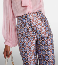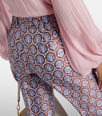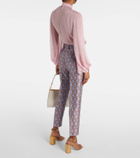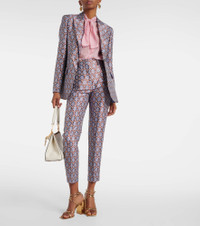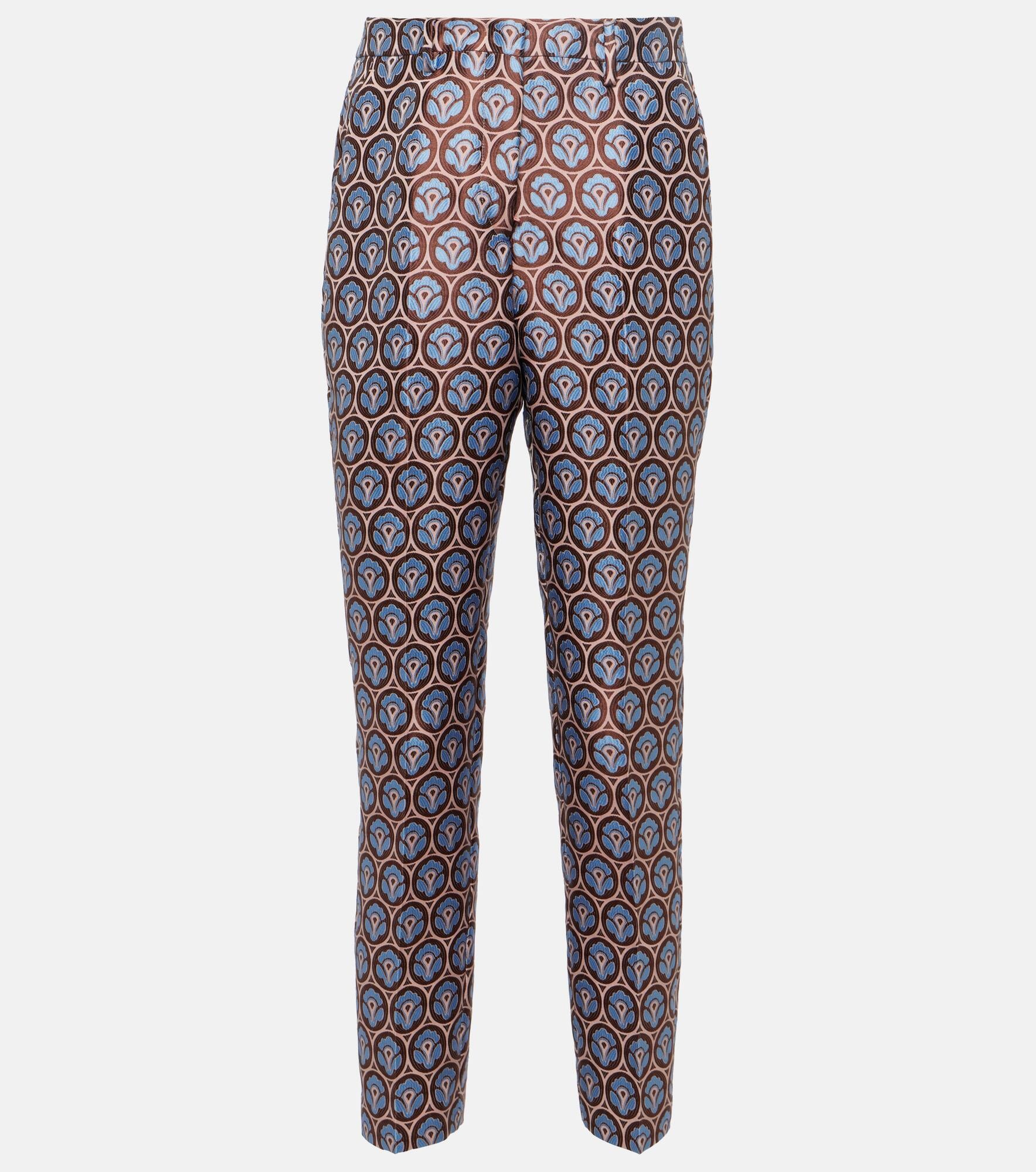 Product Details - Material: 69% polyester, 31% silk - Care instructions: do not wash - Made in Italy - Designer color name: Multicolour On Pale Blue Base - Belt loops - Closure: zipper fly, button and hook fastenings - Pockets: side slit pockets, back pockets - Contains non-textile parts of animal origin - Item number: P00908089 Size & Fit - True to size - Non-stretchy fabric - Slim-leg - High-waisted - The model seen in the picture is 178cm-5'10" and wearing a size IT 40