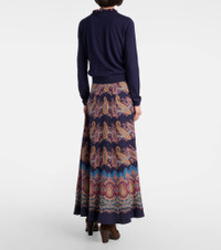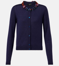 This Etro cardigan is thoughtfully crafted from silk and cashmere to a close-fitting silhouette that gracefully flatters the figure. Its design features a classic crewneck adorned with colorful embellishments that add a touch of charm to the ensemble. Product Details - Material: 55% silk, 45% cashmere - Care instructions: dry clean - Made in Italy - Designer color name: Blu Mare - Item color: blue - Closure: buttoned front - Collar: crewneck - Cuff: ribbed - Hem: ribbed - Item number: P01050803 Size & Fit - True to size - Straight fit - Slightly stretchy fabric - Slightly cropped - The model seen in the picture is 178cm-5'10" and wearing a size IT 40
