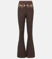Embroidered jacquard-knit bootcut pants