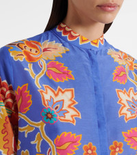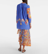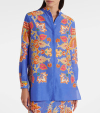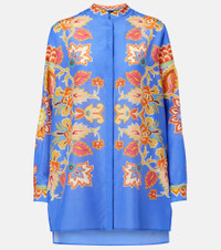 Italian glamour manifested: Etro's brand DNA revels in color, fabric, and an immutable sense of elegance. Crafted from airy cotton and silk, this shirt features a romantic floral print, a concealed button placket, and a band collar. Product Details - Material: 70% cotton, 30% silk - Care instructions: dry clean - Made in Italy - Designer color name: Stampa F.Do Azzurro - Item color: blue, multicolor - Closure: concealed button placket - Collar: band - Side slits - Cuff: one button - Item number: P01050769 Size & Fit - True to size - Designed for a loose fit - Non-stretchy fabric - Falls below the hip - The model seen in the picture is 178cm-5'10" and wearing a size IT 40