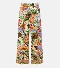 Cropped floral-print cotton-poplin wide-leg pants
