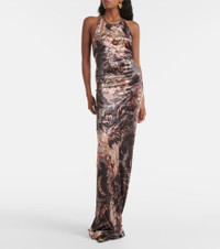 Product Details - Material: 92% polyester, 8% elastane - Care instructions: hand wash - Made in Italy - Designer color name: Print On Grey Base - Material II: 100% polyester - Closure: invisible zipper - Item number: P00965198 Size & Fit - True to size - Low back - Fitted - Stretchy fabric - slit length %cm%cm-2.65" - The model seen in the picture is 178cm-5'10" and wearing a size IT 40
