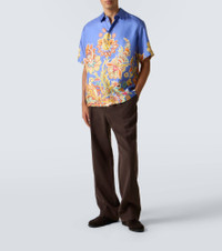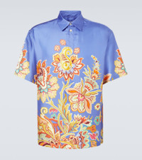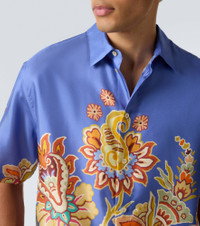 This short-sleeved Etro bowling shirt is crafted from airy silk with a nature-inspired floral print. This piece features a classic straight point collar and a buttoned placket at the front. Product Details - Material: 100% silk - Care instructions: hand wash - Made in Italy - Designer color name: Print On Pale Blue Base - Item color: blue - Closure: buttoned front - Collar: classic (Straight point) - Item number: P01049739 Size & Fit - True to size - Without pleats in the back - Classic fit - Non-stretchy fabric - Falls to the hip - Height of model is 188cm-74" and wears a size L