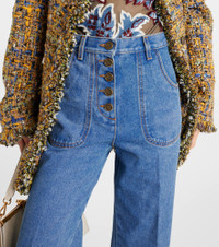 Product Details - Material: 100% cotton - Care instructions: machine wash at 30 degrees - Made in Italy - Designer color name: Multicolour On White Base - Closure: buttoned front - Belt loops - Pockets: side slit pockets, back pockets - High-rise - Item number: P00957973 Size & Fit - True to size - Non-stretchy fabric - Slim-leg with a flared hem - High-rise - The model seen in the picture is 178cm-5'10" and wearing a size 26