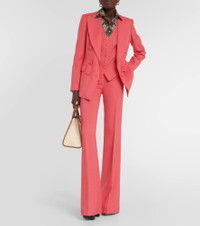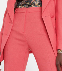 These high-rise pants from Etro showcase fine Italian tailoring with a modern approach. The design comes in solid pink with a chic flared silhouette, and pairs well with the matching vest for a bold style statement. Product Details - Made in Italy - Lining: 69% viscose, 30% wool, 1% elastane - Care instructions: dry clean - Designer color name: Rosa - Pockets: welt pockets - Closure: zipper fly, button and hook fastenings - Material: 1% elastane, 69% viscose - Item number: P00837957 Size & Fit - Fits large to size - we recommend trying one size smaller - Mid-weight material - Wide-leg - The model seen in the picture is 178cm-5'10" and wearing a size IT 38