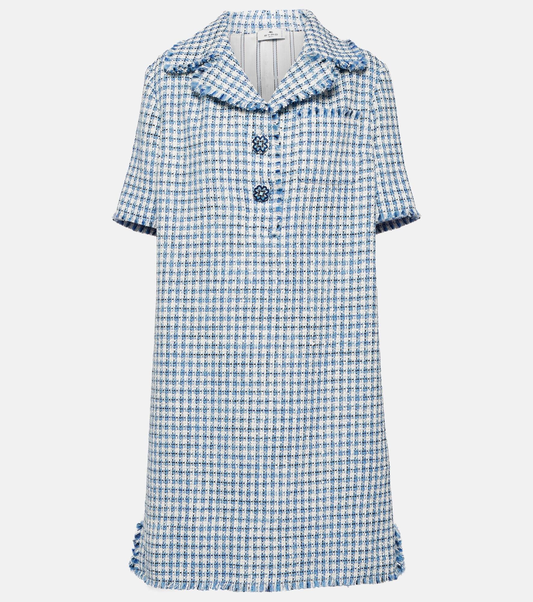 Sophistication is at the heart of each Etro piece. This minidress has a timeless houndstooth pattern and collar. Product Details - Made in Italy - Interlining: 48% acetate, 52% viscose - Closure: partially buttoned front - Designer color name: Azzurro - Care instructions: dry clean - Material: 8% polyamide, 18% polyurethane, 19% acrylic, 15% cotton, 15% viscose, 27% virgin wool - Item number: P00839499 Size & Fit - Fits large to size - we recommend trying one size smaller - Designed for a loose fit - Mid-weight material - The model seen in the picture is 178cm-5'10" and wearing a size IT 38