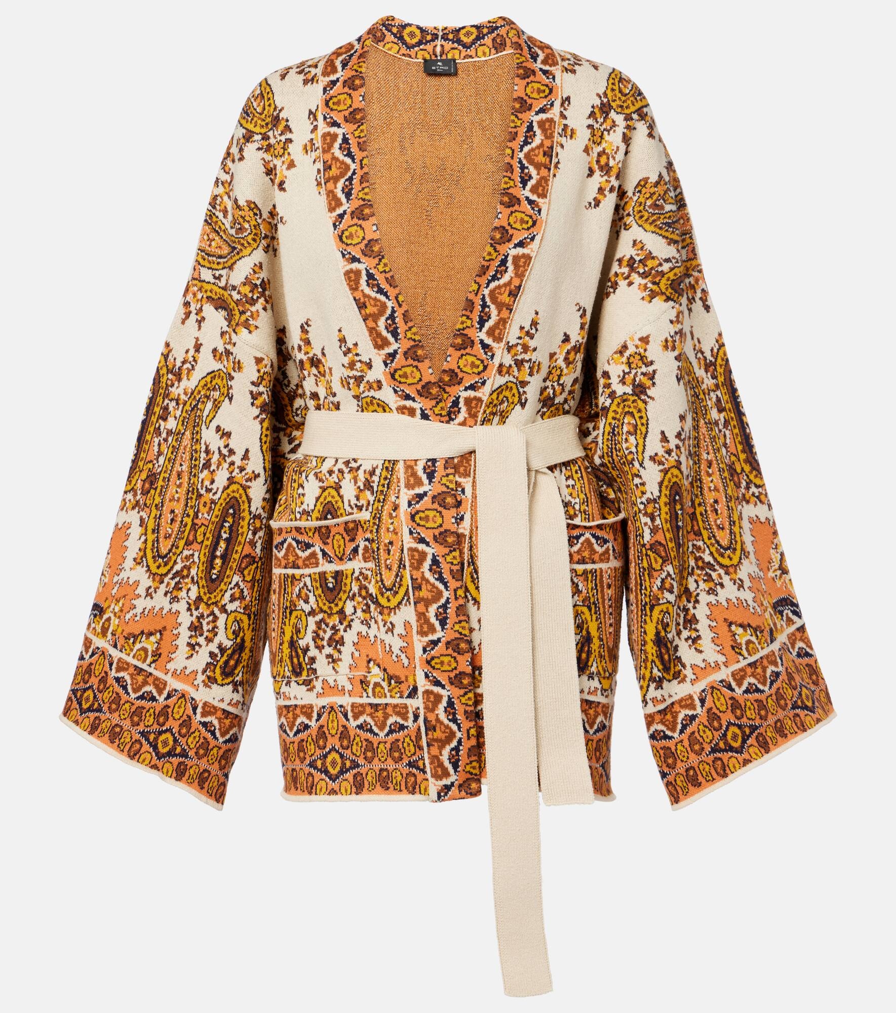 Etro's patterns remain a cornerstone of the Italian brand today. Made from a soft cotton-blend fabric, this wrap cardigan is patterned with a jacquard motif, enriched by a detachable belt and two patch pockets on the front. Product Details - Material: 65% cotton, 35% viscose - Care instructions: dry clean - Made in Italy - Designer color name: Stampa F.Do Bejge - Item color: beige, multicolor - Detachable belt - Item number: P01050820 Size & Fit - True to size - Dropped shoulders - Loose fit, comes with belt - Non-stretchy fabric - Falls below the hip - The model seen in the picture is 178cm-5'10" and wearing a size XS