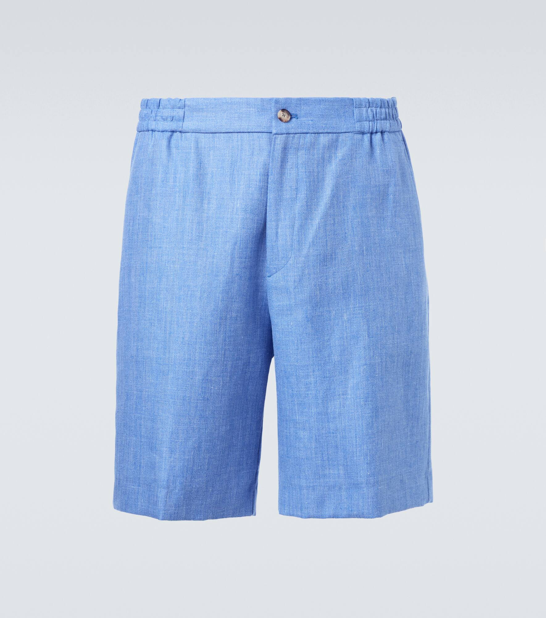 Straight-Leg Linen and Wool-Blend Shorts Blue