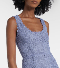 Crafted from intricate macrame, this Etro midi dress features scalloped edges, a scoop neckline, and a concealed rear zip fastening, combining artisanal texture with a refined, feminine silhouette. Product Details - Material: 100% polyester - Care instructions: hand wash - Made in Italy - Designer color name: Glicine 2 - Item color: blue - Material II: 100% polyester - Item number: P01050759 Size & Fit - True to size - Cinched waist - Non-stretchy fabric - slit length 26,0cm-10" - The model seen in the picture is 178cm-5'10" and wearing a size IT 40