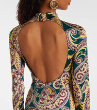 Asymmetric open-back paisley-print stretch-jersey dress Multi