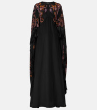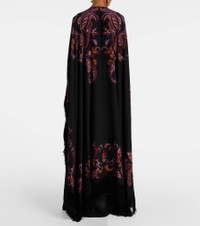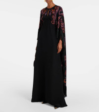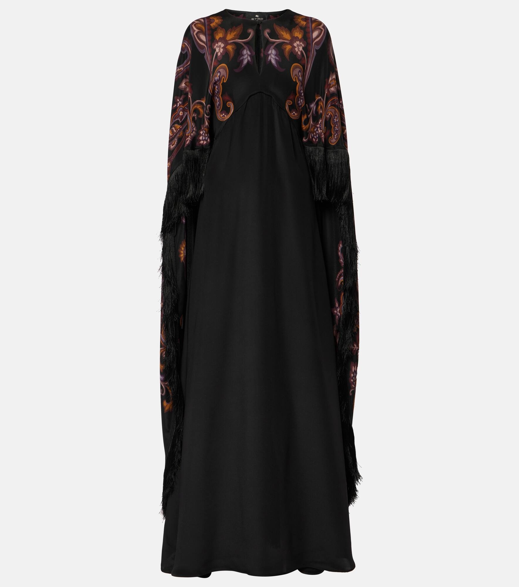 Paisley prints are so synonymous with Etro that they've become a house signature. The motif is featured on this gown, made in Italy purely from silk and finished with a floor-sweeping cape with fringe details. Product Details - Material: 100% silk - Care instructions: dry clean - Made in Italy - Designer color name: Print On Black Base - Trim: 100% acetate - Closure: belted waist - Item number: P00995518 Size & Fit - True to size - Straight fit - Loose outer layer - Non-stretchy fabric - The model seen in the picture is 178cm-5'10" and wearing a size IT 40