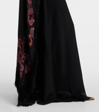 Paisley caped fringed silk gown
