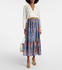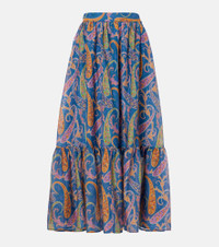 Paisley prints are so synonymous with Etro that they've become a house signature. This maxi skirt is thoughtfully crafted in Italy from soft cotton and silk and finished with the iconic pattern. Product Details - Material: 74% cotton, 26% silk - Care instructions: dry clean - Made in Italy - Color: multicoloured - Designer color name: X0880 - Item color: multicolor, blue - Lining: 100% polyester - Elasticated waistband - Item number: P01122038 Size & Fit - True to size - Elasticated waist - Non-stretchy fabric - High-waisted - The model seen in the picture is 178cm-5'10" and wearing a size IT 40