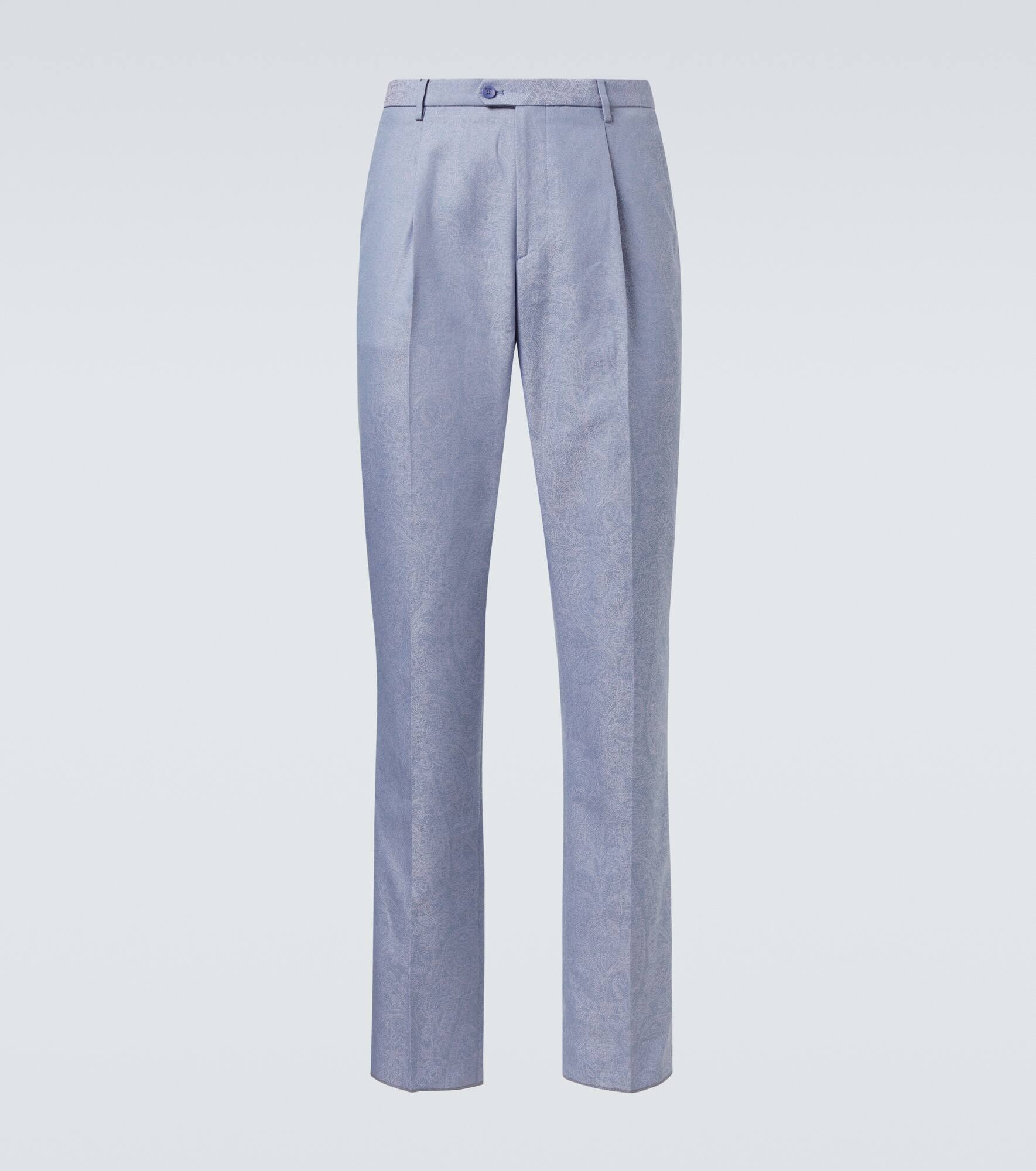 These Etro straight pants will become a year-round essential with their cotton composition. Expertly crafted in Italy, the pair is designed with sophisticated paisley jacquard and a logo patch at the back. Product Details - Material: 100% cotton - Care instructions: dry clean - Made in Italy - Designer color name: Light Blue - Item color: blue - Closure: zipper fly, button fastening - Hem: unfinished (ready for alteration) - Belt loops - Pockets: side slit pockets, back pockets - Item number: P01049772 Size & Fit - True to size - Non-stretchy fabric - Straight leg - Unhemmed for tailoring - Height of model is 192cm-75.5" and wears a size 50