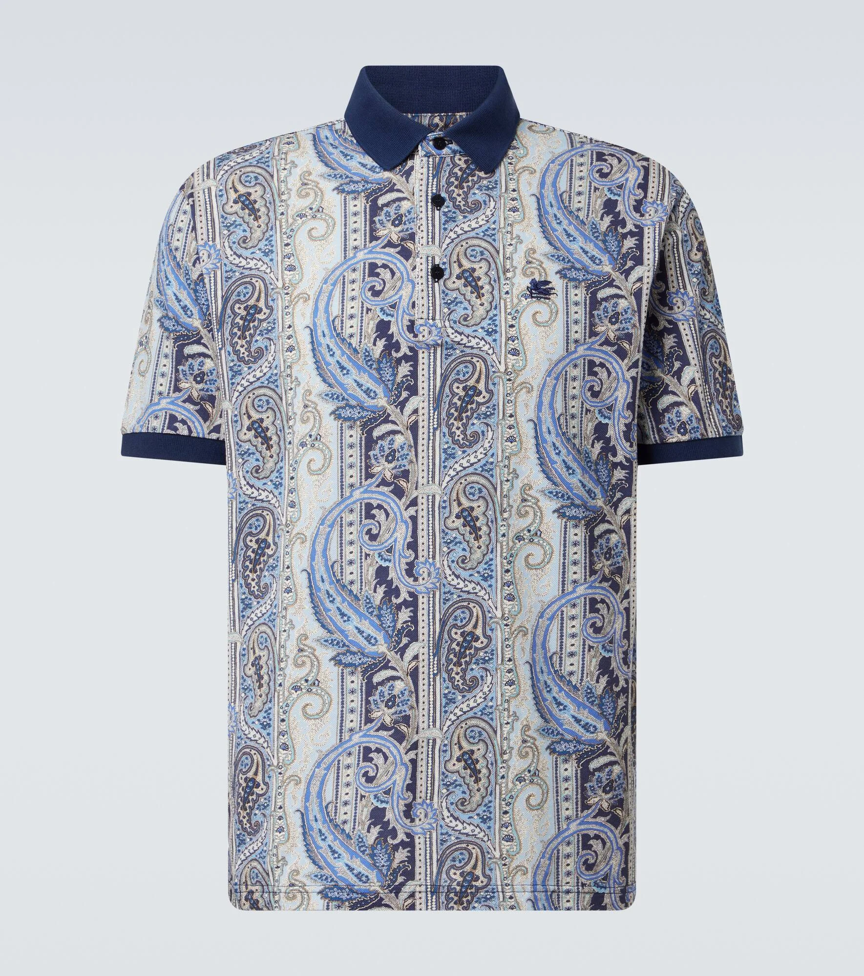 Paisley prints are so synonymous with Etro that they've become a house signature. The brand's iconic motif features across this refined, Italian-made cotton polo shirt. Product Details - Material: 100% cotton - Care instructions: machine wash at 30 degrees - Made in Italy - Designer color name: Print on Pale Blue Base - Item color: blue, multicolor - Collar: polo collar - Closure: partially buttoned front - Item number: P01135103 Size & Fit - True to size - Straight fit - Slightly stretchy fabric - Falls below the hip - The model in the picture is 185cm-6'1" and wearing a size L