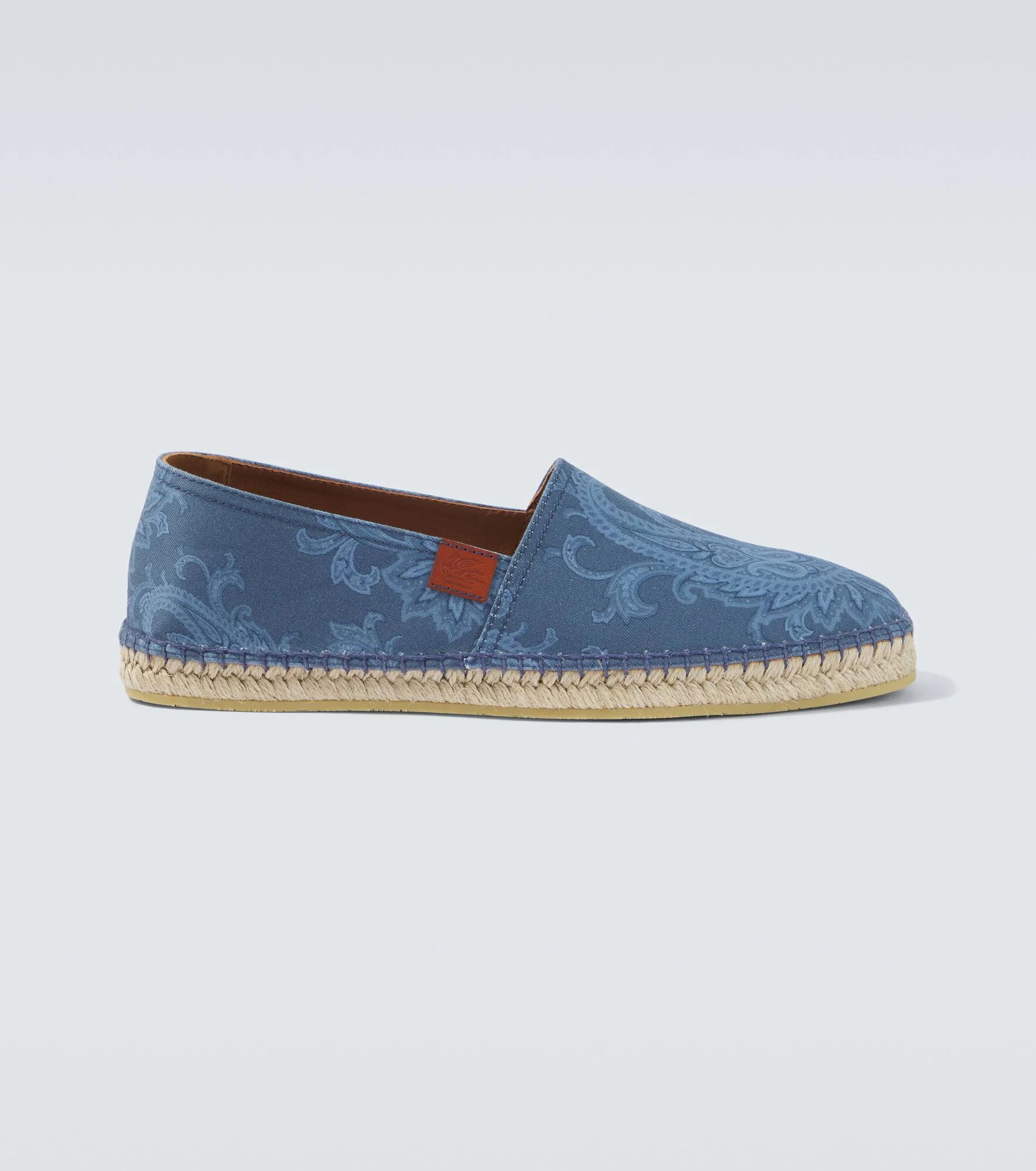 Paisley prints are so synonymous with Etro that they've become a house signature. The iconic motif is showcased on these espadrilles, made from gabardine with classic jute trims and a distinctive Pegaso patch. Product Details - Upper: cotton - Lining: leather - Sole: jute insole, rubber sole - Color: blue - Toe shape: square toe - Made in Spain - Includes: dust bag, shoe box - Designer color name: Print On Blue Base - Item number: P01135134 Size & Fit - True to size - Half sizes please take the next size up - European sizes